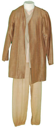 The “Risan's” are from the planet Risa and were featured in the Star Trek: Deep Space Nine episode “Let He Who is Without Sin…”. The male costume lot includes a blue mesh fabric top with built-in blue spandex shorts and two pairs of purple crinkled fabric trousers. |