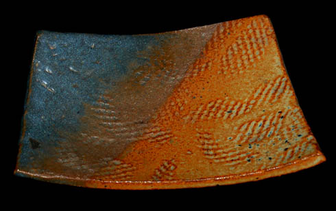 This ceramic dish was used as set dressing during the filming of Star Trek episodic television. The interesting shaped dish rest on three short stumps and is textured with small grooves. Its primary glazed colors are blue and gold. Measures approx. 8 x 6 x 2 inches. |