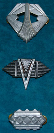 A set of silver colored metal Terran Empire uniform badges featured in the Star Trek: Enterprise episodes “In a Mirror, Darkly, Parts I and II” for wear by high ranking Starfleet officers like “Captain Maxmilian Forrest” (Vaughn Armstrong), “Commander Archer” (Scott Bakula), and admirals “Black” (Gregory Itzin) and “Gardner” (John … |