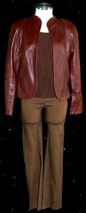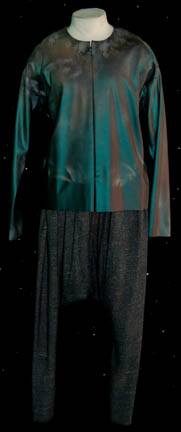 A costume featured in the Star Trek: The Next Generation episode “The High Ground” for wear by actors portraying police attempting to thwart the attacks of ‘Ansata Rebels'. The costume is blue textured trousers with a jacket top of matching blue wool and micro suede cuffs and shoulder accents. A … |