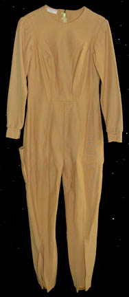A tan colored Class-D Starfleet Uniform jumpsuit featured in Star Trek I: The Motion Picture. The costume features an open topped pocket on the right thigh, a pair of matching unattached cloth covered shoes, an unattached plastic bio-monitor, a pair of sciences orange division strips for the shoulders, and an … |