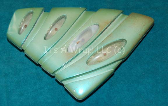 A prop computer console featured in the Star Trek: Enterprise episodes “In a Mirror, Darkly, Parts I and II” in sets depicting the “Starship Defiant”. The console is made of a wood housing with a smoked acrylic ‘display screen' and a similarly constructed button board that features affixed ‘jewel’ style … |