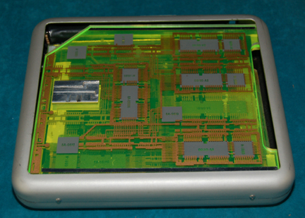 A prop created for episodes of Star Trek: Enterprise that features 22nd century Starfleet inventory applications and specially silkscreened faux circuitry. The item appears as a circuitry housing that is framed in a vacuum formed frame that is painted metallic silver with multiple layers of translucent green acrylic. The item … |