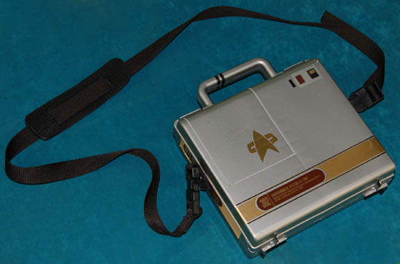 This is a 24th century carry case the style of which made appearances in feature films set in the 24th century, later seasons of Star Trek: Deep Space Nine and possibly Voyager. The case was originally black but custom painted silver with small metallic applications to simulate control features. On … |