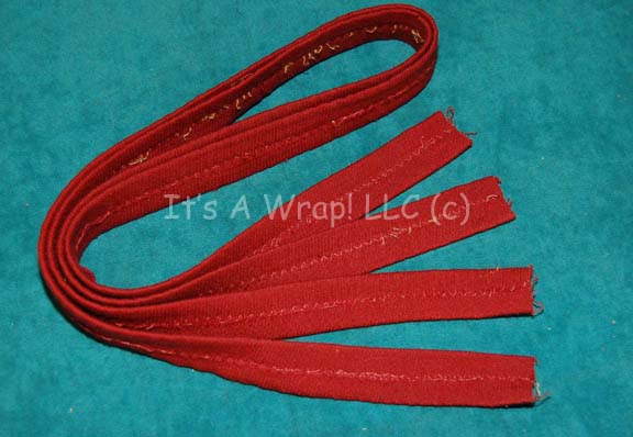 A pair of fabric strips featured on the costume trousers of Starfleet uniforms in Star Trek feature films. The items are folded over and stitch sealed; meant to be sewn onto the outside seam of trousers to indicate the wearer to be part of the admiralty. The items are 37 … |