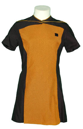 A costume featured in the Star Trek: Deep Space Nine episode “Body Parts” for wear by Rosalind Chao in her portrayal of “Keiko O'Brien” following the relocation of her unborn child to “Major Kira” (Nana Visitor) during a shuttle accident and subsequent transporter incident. The costume is a full length … |
