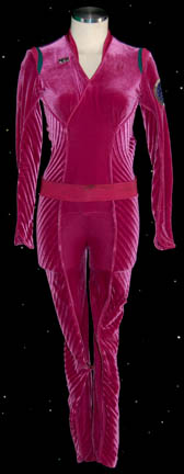 “T'Pol” (Jolene Blalock) was a female Vulcan who served onboard Enterprise NX-01 under Captain Jonathan Archer (Scott Bakkula) during the Star Trek: Enterprise series. This fabulous jumpsuit was made for use by T’Pol during season 3 of the show. The velvet magenta suit has loose pleated detail down the side … |
