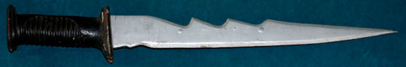 A rubber prop knife featured in the Star Trek: The Next Generation episode “Allegiance”. The item is a metallic silver painted rubber knife with beveled edges to appear sharp, and a serrated back end attached to a tough hand grip similar to those used by Nausicaans in the episode “Tapestry”. … |
