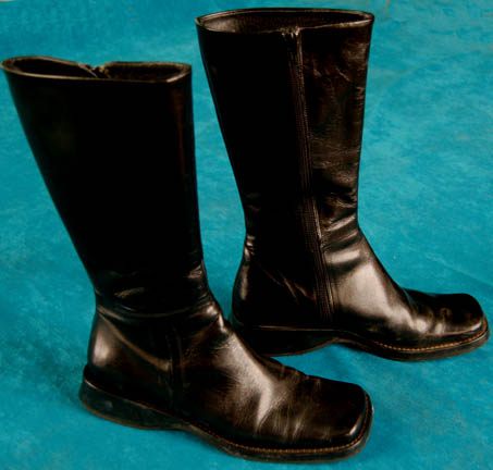 Finally located, a pair of black ladies boots for wear with Starfleet uniforms featured in episodes of Star Trek: Enterprise. These ‘Charles David' name brand boots are shiny, half calf length with subdued heels and inner zips and feature sewn in name brand tags with actor’s names penned onto them … |
