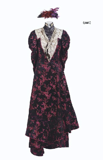 Four outfits made for Marina Sirtis as Deanna Troi in <I>Star Trek: The Next Generation</I>, comprising: a Romulan-style quilted jacket and pants from "The Face of the Enemy", a green dress, a blue dress, includes leggings with built-in shoes, and a purple and black period dress with hat from "Time's … |