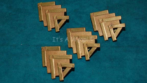 A set of four molded metal rank badges like those appearing in the Star Trek: Enterprise episodes “In a Mirror, Darkly: Parts I and II”. The items indicate the wearer to be an admiral and were affixed to shoulder boards and the silver colored ribbon sewn into the uniform jacket … |