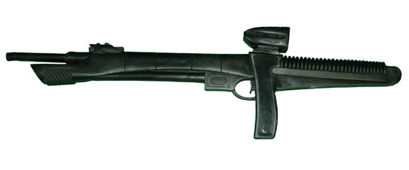 This prop Vulcan rifle was used during the Star Trek: Enterprise episode “Shadows of P'Jem”. Made of black cast foam rubber this background “rifle” features a simulated scope and rivets. Measures approx. 29 x 8 x 3 inches. |