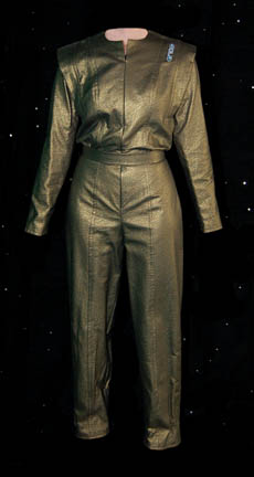 “B'Elanna Torres” (Roxann Dawson), half-human and half-Klingon, was Chief Engineer onboard the U.S.S. Voyager during the Star Trek: Voyager series. This is her Away Mission uniform that includes a gray jumpsuit with silver quilted sides, knees and inner arms. An operations gold band runs around the upper torso and there … |