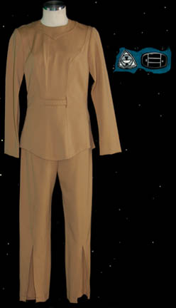A set of brown off duty wear featured in Star Trek I: The Motion Picture for wear by William Shatner in his portrayal of “Admiral Kirk”. The costume is a set of brown trousers and a matching top with a crimped appearing neckline and cuffs, with a waist tie. The … |