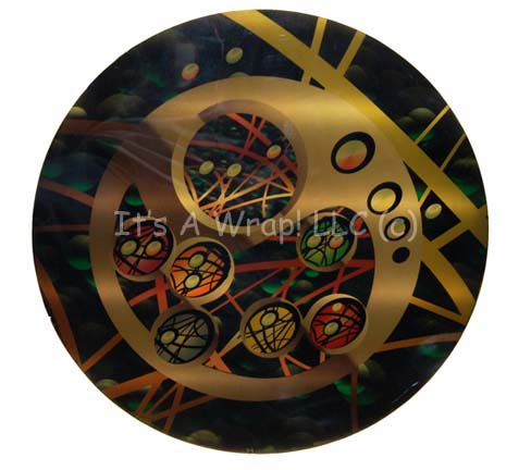 A prop computer console display featured in the Star Trek: Enterprise episode “Unexpected” on the Xyrillian starship set. The item is a circular shaped piece of smoked acrylic with a graphical application adhered to the reverse. The display is best viewed when back lit by an external light source and … |