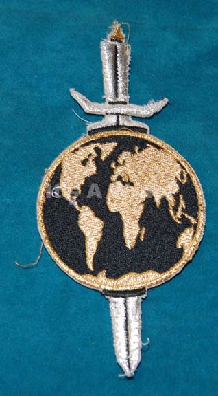 An exceptionally rare screen used Terran Empire logo uniform shoulder patch made for the Star Trek: Enterprise episodes “In a Mirror, Darkly, Parts I and II” for wear on Starfleet crew uniform jumpsuits. The patch depicts a gold colored Earth with black oceans and a silver colored sword stabbed through … |