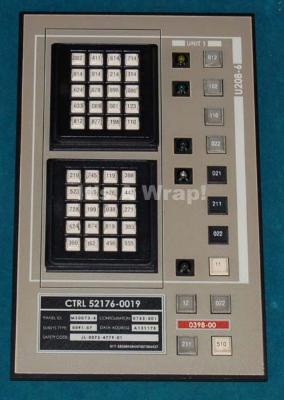 A console button board like those appearing on the bridge set of the “Enterprise NX-01” in various episodes of Star Trek: Enterprise. The item is a sheet plastic based panel with a graphical application adhered to the face that features a series of rubber faux buttons in gray, white, and … |