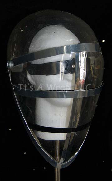 A clear plastic face and head shield featured in Star Trek V: The Final Frontier for wear by Starfleet engineers. The item appears during the scene in which the “USS Enterprise-A” command crew return to the ship by way of shuttlecraft. Two engineering repair crewmen are wearing the items and … |