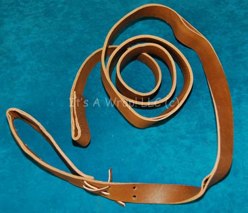 A brown colored leather strap featured in the Star Trek: Enterprise episode “Marauders” which appeared on the Klingon transport crew as a method by which to carry their bat’leths’. The item is a dual sided strap with leather ties and a snap end. Measures approx. 72 X 1 inch. Bat’leth’s … |
