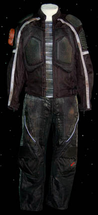 A costume featured in the Star Trek: Enterprise episode “The Anomaly” for wear by actors portraying Osaarian Pirates in the Delphic Expanse. The costume is a ‘First Gear' name brand motorcycle jacket and pants with multiple crash protection placements, size adjusting straps, zips, and reflective safety strips. The costume has … |