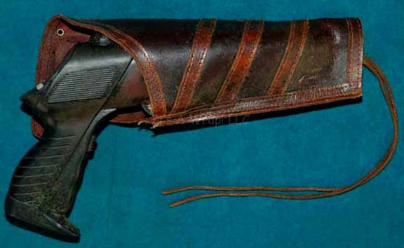 A prop item featured in various episodes of Star Trek: Enterprise. This item is a Klingon disruptor pistol; it is rubber cast in varying shades of brown featuring metal-colored accents along the barrel and muzzle, includes a brown, leather holster with a Bianchi trademark belt clip. Both items have been … |