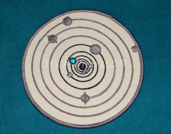 A shoulder patch made for wear on Starfleet uniforms in Star Trek I: The Motion Picture, worn by Starfleet crewmembers at Starfleet Headquarters in San Francisco, and presumably other locations. The item depicts the ‘Sol System', Earth’s solar system, absent of a gray border like some other similar items, a … |