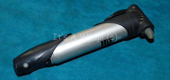 Another example of a found item made into a prop for Star Trek episodic television. The item is in actuality a bicycle tire pump made from injection molded plastic parts and features a telescoping plastic pump action. The tire connection is covered by a rubber screw cap that has been … |