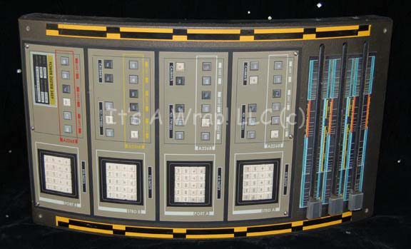 A piece of set dressing similar to those featured in various episodes of Star Trek: Enterprise. This item is labeled ‘Power Distrib 3459’ denoting it as a Power Distribution console for the “Enterprise NX-01”, it consists of a wooden frame painted a dark-gray featuring a black piece of sheet plastic … |