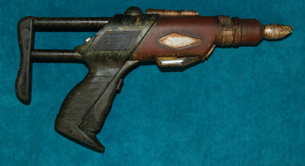 A prop Klingon disruptor pistol like those appearing in multiple episodes of star Trek: Enterprise like “Bounty”. The item is made from sturdy molded rubber painted rust colored with metallic silver painted accents and a general glaze of painted distress to create the appearance that the item is ‘aged’. The … |