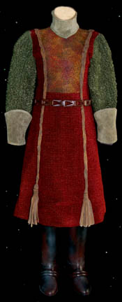 This costume was worn by a civilian Klingon child in the Star Trek: Deep Space Nine episode “Rules of Engagement” in which “Worf” (Michael Dorn) tried to avoid extradition by the Klingons after he accidentally destroyed a transport ship carrying Klingon civilians. The costume includes a woven crimson dress with … |