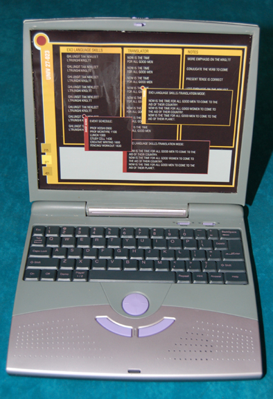 A prop laptop computer featured in “Broken Bow”, the premiere episode of Star Trek: Enterprise, for use by students in “Hoshi Sato’s” (Linda Park) languages class. The item is an injection molded plastic computer learning tool for children altered for screen use in the episode. The item features a full … |