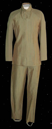 This costume was made for wear by “Captain Sisko” (Avery Brooks) in the Star Trek: Deep Space Nine episode “For the Uniform” in which Sisko obsessively pursued the Maquis leader “Michael Eddington” (Kenneth Marshall). The costume includes a loose fitting green-gray shirt with snaps under the crotch and a Velcro … |