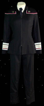 A black uniform costume featured in various episodes of Star Trek: Enterprise for wear by actors portraying Starfleet admirals. The costume is a pair of black trousers with a matching jacket featuring silver and red piping around the shoulders and silver and red lined trim at the cuffs. The costume … |