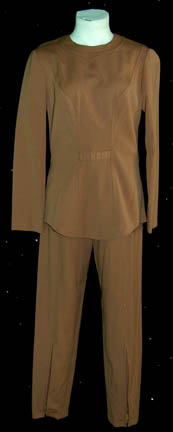 A brown colored Class-A Starfleet uniform featured in Star Trek I: The Motion Picture. The costume is brown trousers with unattached shoes and a matching long sleeved top with an unattached plastic bio monitor. The costume is intended for female wearers. |