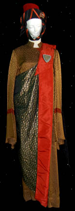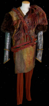 A pair of character costumes featured in the Star Trek: Deep Space Nine episode “Invasive Procedures”. Worn by “Smallville” star John Glover during his portrayal of “Varad” whose band of terrorists took over “Deep Space Nine” and stole the “Dax” symbiont from “Jadzia” (Terry Farrel), this costume is made up … |