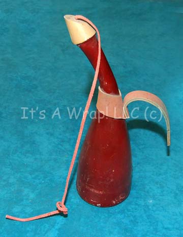 A prop item similar to those featured throughout the Star Trek episodic television pantheon. This prop item is a bottle of Saurian brandy; it is deep red in color, the general shape of a regular wine if the neck had been bent to the side, a strap of leather cord … |