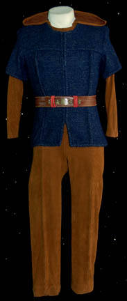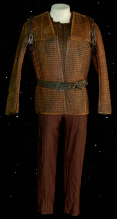 A costume featured in the Star Trek: Enterprise episode “Detained” for wear by “Lt. Reed” (Dominic Keating) while masquerading as a Suliban prisoner in a Tandaran concentration camp. The costume is a brown suede jumpsuit with two dark blue knit tops and a brown leather belt with a keep. The … |