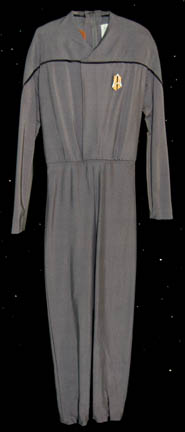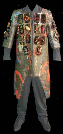 An incredibly ornate costume featured in the Star Trek: Voyager episode “Think Tank” for wear by “Fennim” (Steve Dennis), an empathic alien who was part of a crew of geniuses. His costume is exceptional in that it is composed of a gray jumpsuit with attached shoes and an impressively decorated … |