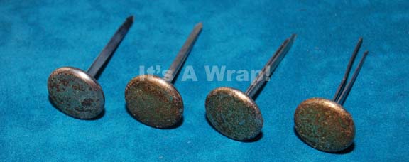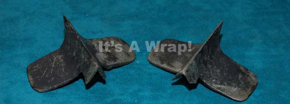 A lot of four Klingon themed bolts made from metal to appear as embellishments on Klingon costumes. The items are distressed to appear aged as in the production design of Klingons, and are brad backed. Measures approx. 2.25 X 0.75 inches. |