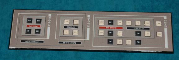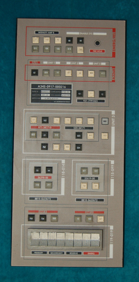 A console button board like those appearing variously in episodes of Star Trek: Enterprise on the set of the “Enterprise NX-01”. The item is a sheet of smoked acrylic with beveled edges and a graphical application adhered to the face. The item also features rubber faux buttons and remaining double … |