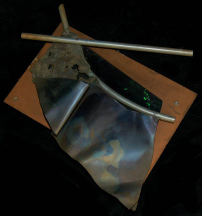 This dynamic piece was used as set dressing during the filming of Star Trek episodic television. Multiple layers of fashioned metal create the piece including a wavy piece of purple metal and a distressed piece of metal. Two silver pipes complete the decoration, one of which is free at one … |