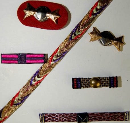 A set of commendation ribbons, metal rank and placements, and sleeve rank featured on admirals in Star Trek VI: The Undiscovered Country. The rank is ‘commodore' with two metal gold and silver colored wire backed rank badges, one on a red placement for the left sleeve of a maroon Starfleet … |