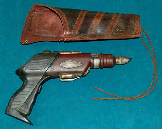 A Klingon disruptor pistol featured in various episodes of Star Trek: Enterprise. It is made of soft rubber painted in varying shades of brown with silver painted accents along the barrel and muzzle to appear metallic. The accompanying holster is brown leather with a Bianchi trademark belt clip on the … |