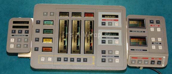 A prop computer keyboard interface like those appearing variously in episodes of Star Trek: Enterprise. The item is molded resin with rubber faux buttons adhered across its surface. The item is molded to present several raised features and is adorned with two differently sized blue gel dome ‘electric eyes’. Items … |