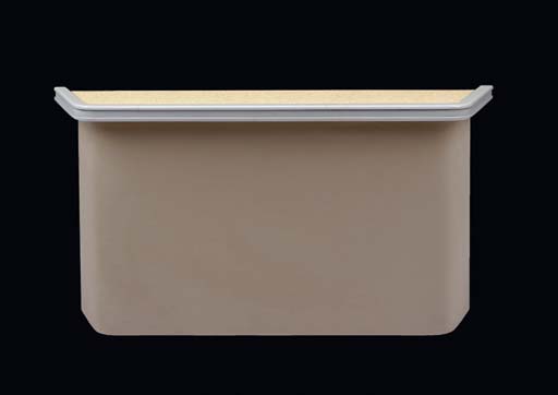 A grey and taupe credenza with cream imitation wood top and grey painted tabletop rim -- <I>96x13x28in.</I> -- used as set dressing on the <I>Enterprise-E</I> |