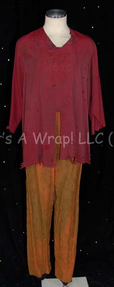 A costume featured in the Star Trek: Enterprise episode “Awakening”; wherein “Captain Archer” (Scott Bakula) and “T’Pol” (Jolene Blalock) encounter a radical sect of Vulcans called the “Syrrannites” who are being blamed for the bombing of the “Earth Embassy”. This costume consists of a long-sleeved, maroon-colored shirt with a silk-like … |