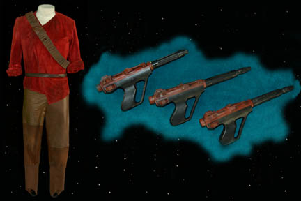 A costume and prop firearms featured in the Star Trek: DS9 episode “The Emperors New Cloak” for wear by James Darren in his portrayal of “Fontaine”, the flesh and blood Mirror Universe version of the famed holoprogram “Vic Fontaine”. The costume is two pairs of two-tone leather trousers with a … |