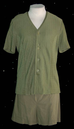 This outfit was worn by “Dr. Phlox” (John Billingsley); a Denobulan who joined the NX-01 Enterprise after being recruited from earth. His shirt is green with striped detail, a V-neck and buttons up the front. The matching shorts are also green and button up the front. The inside tags each … |