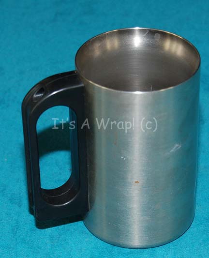 A pair of polished silver colored metal drinking mugs like those appearing in the Star Trek: Voyager episode “Night” during a scene where “Tom Paris” (Robert Duncan McNeil) drinks from one. These mugs feature a solid black plastic handle and no identifying marks. A minimal amount of scuffing is visible … |