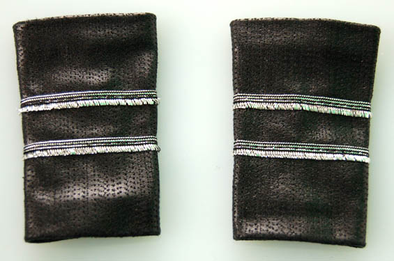 A pair of wardrobe accents featured in the Star Trek: Enterprise episodes “In a Mirror, Darkly, Parts I and II” for wear on Starfleet uniforms in the Terran Empire of the Mirror Universe. The items are black faux leather shoulder boards with a pair of silver colored fringe strips ringing … |